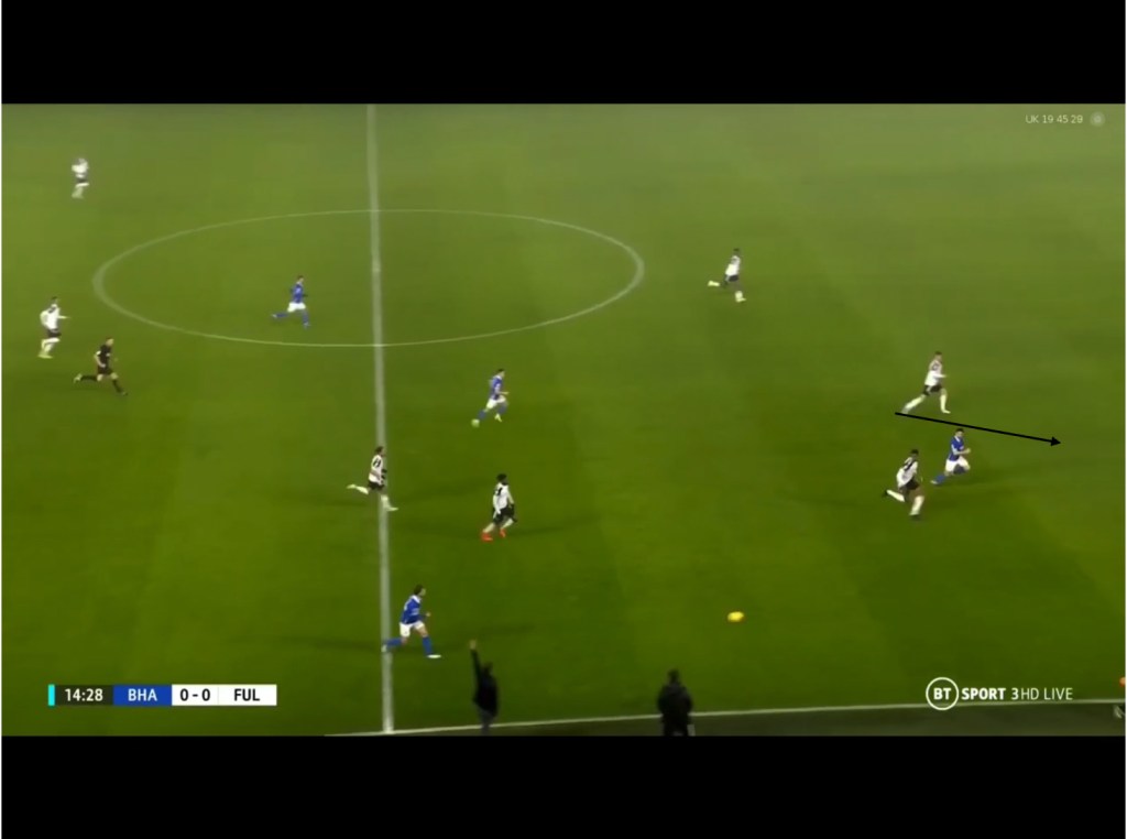Nevertheless, Groß is not the only player that makes this run, as Maupay and Trossard occasionally make a similar run but mainly in transition.